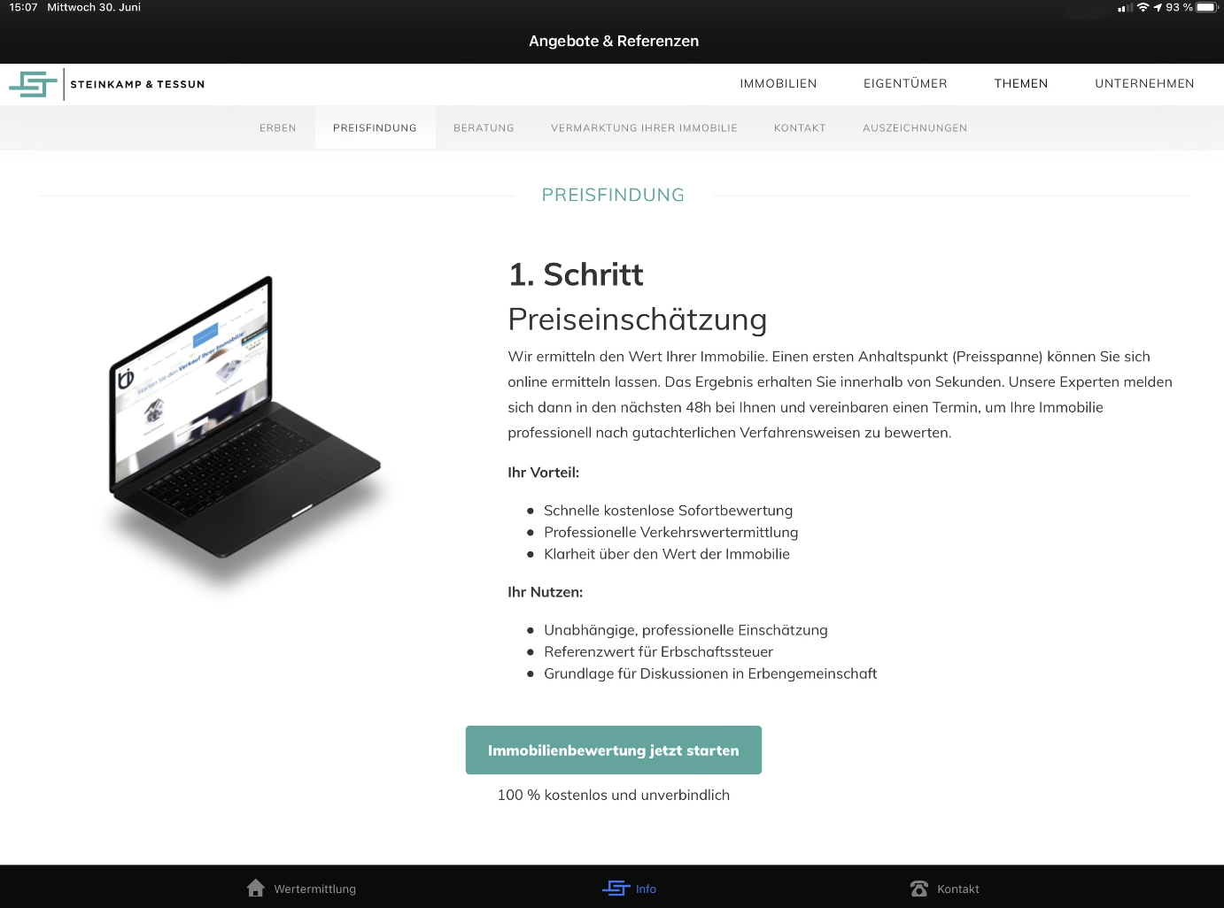 Bewerten, speichern und verwalten Sie Ihre Immobilien professionell – mit der offiziellen App der Steinkamp & Tessun GmbH.